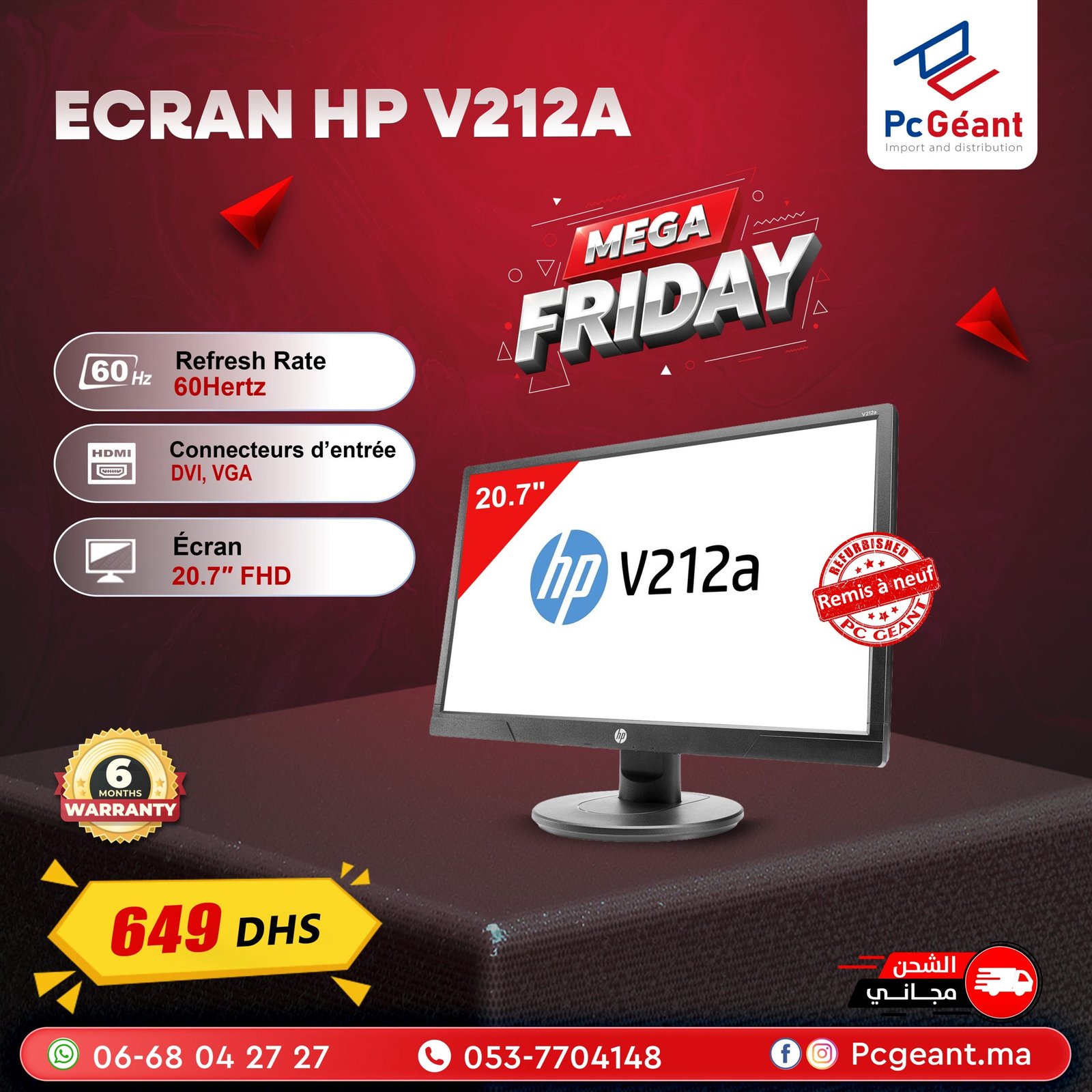 ![Ecran HP V212a (20,7 pouces) Full HD avec Haut-parleurs intégrés - [Remis à Neuf] – Image 4](https://onlinestore.ma/wp-content/uploads/2025/11/ecran-hp-v212a-de-5258-cm-207-pouces-full-hd-1920x1080-m6f38as-3.jpg)